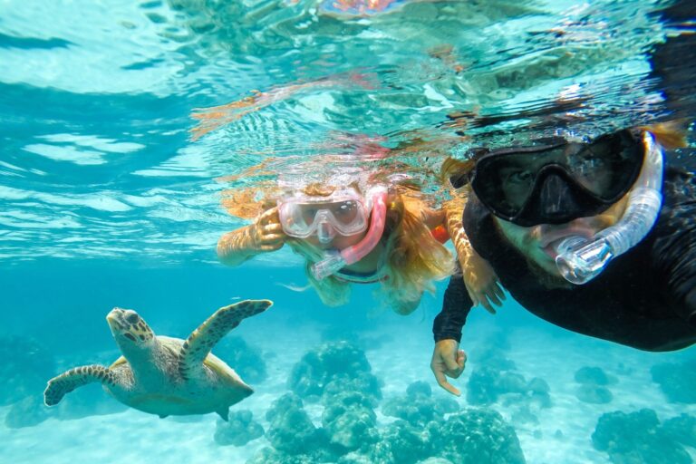 - Guided snorkelling over coral gardens with chances to see tropical fish, sea urchins, and other marine life.
